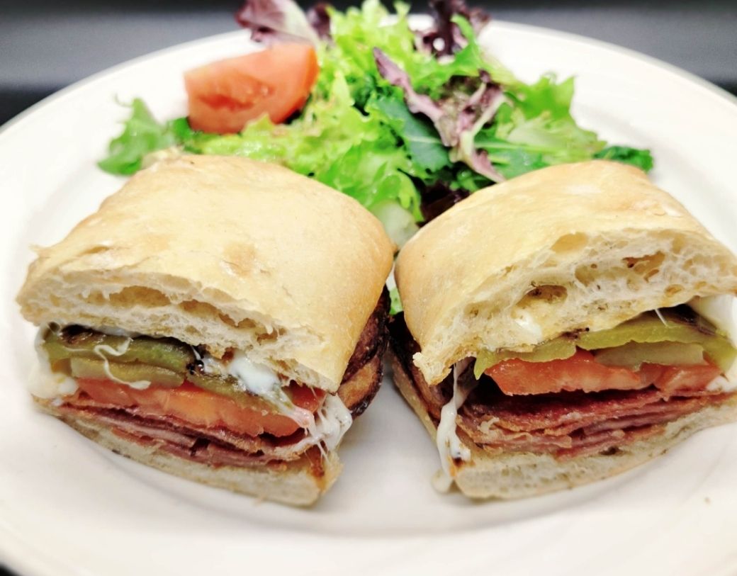 Kalamata olives, artichoke hearts, romaine, goat cheese, red onions, cucumbers and roma tomatoes