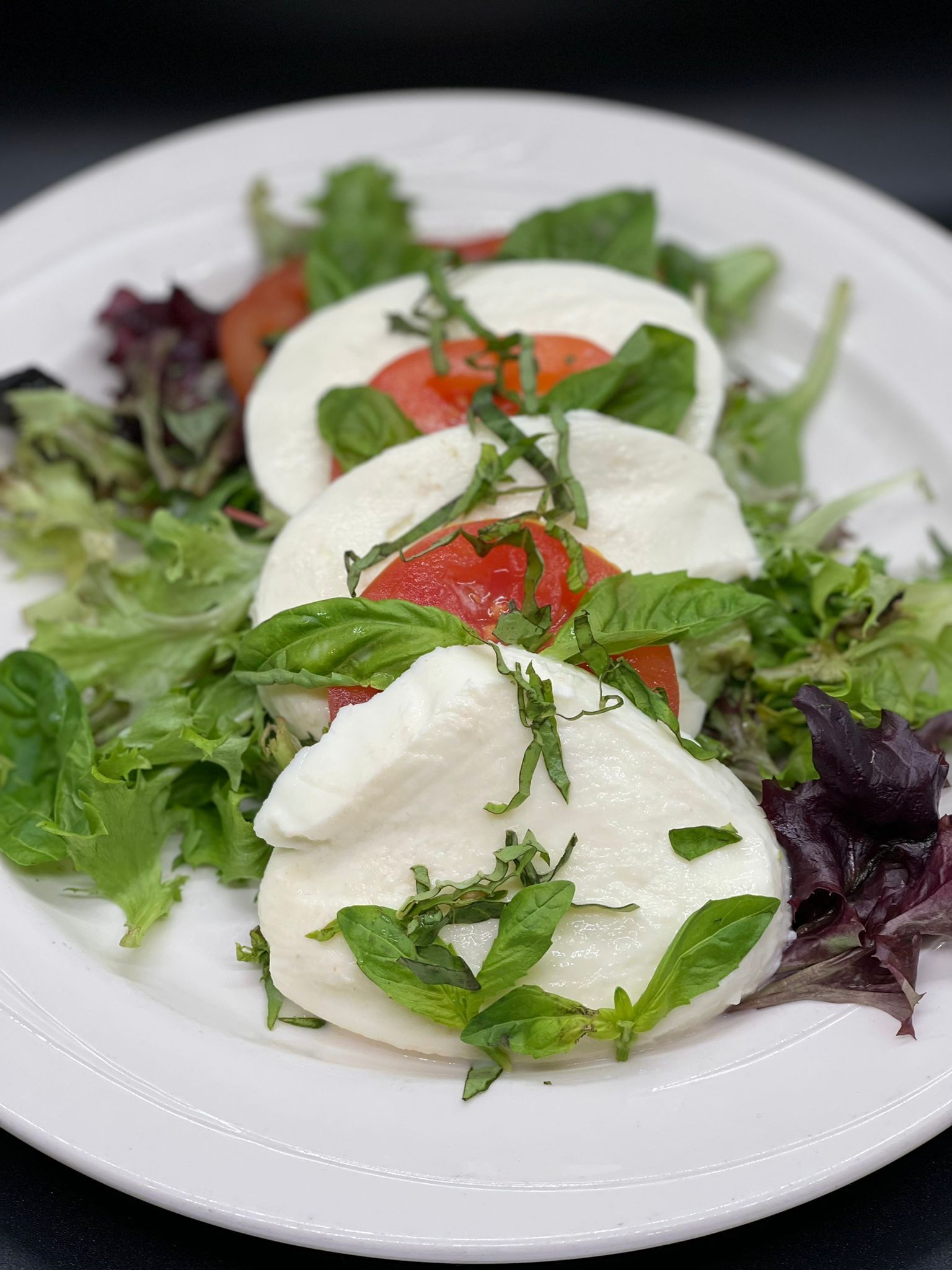 Sliced Bufala Mozzarella, tomate and fresh basil